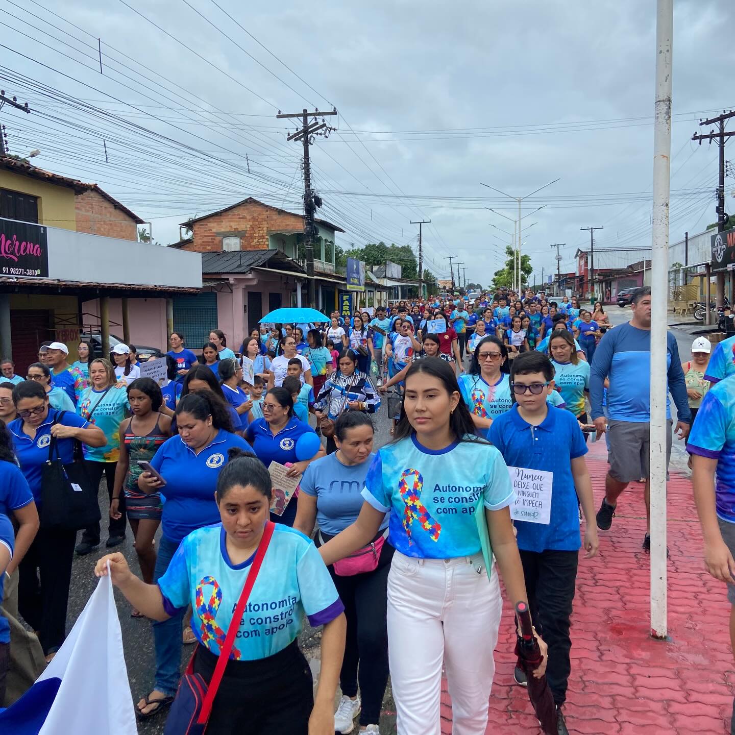 A mobilização teve início em frente à Escola Francisco Nunes, reunindo alunos, profissionais da educação, famílias e a comunidade em geral em um momento de união, sensibilização e fortalecimento da inclusão.
