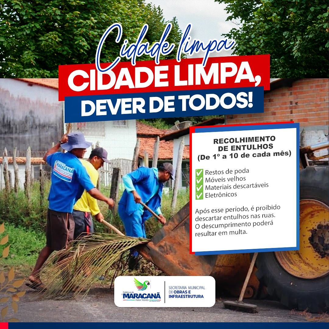 A Prefeitura de Maracanã reforça um importante lembrete para manter nossa cidade limpa e organizada:
