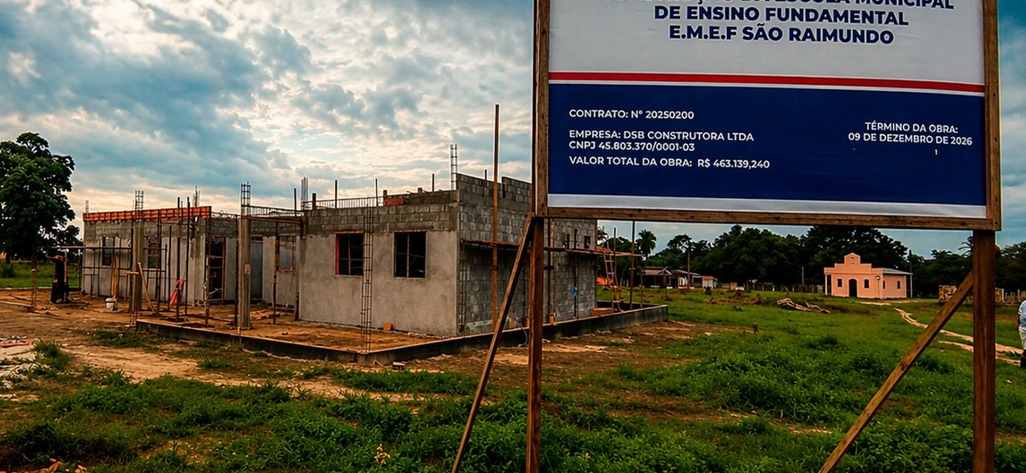 A Prefeitura de Maracanã, por meio da Secretaria Municipal de Obras, segue avançando com a construção da Escola Municipal de Ensino Fundamental São Raimundo, na comunidade de Campo Alegre, reforçando o compromisso da gestão com a melhoria da infraestrutura educacional no município.
