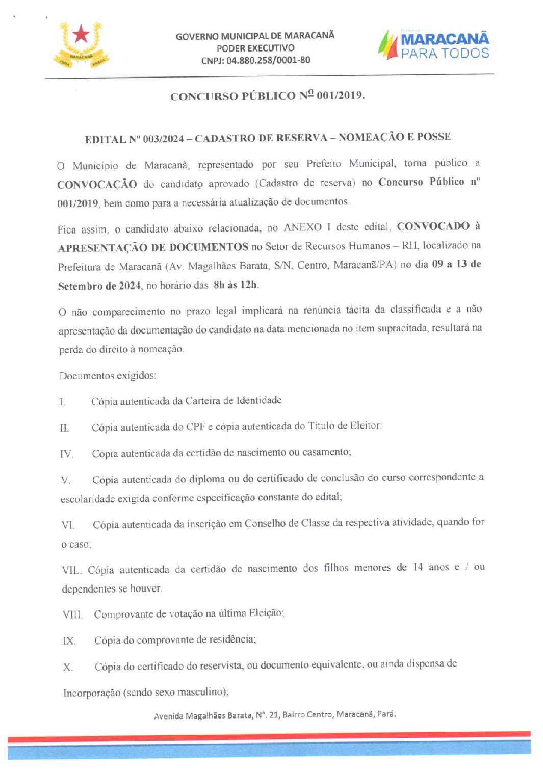 CONCURSO PÚBLICO Nº 001-2019