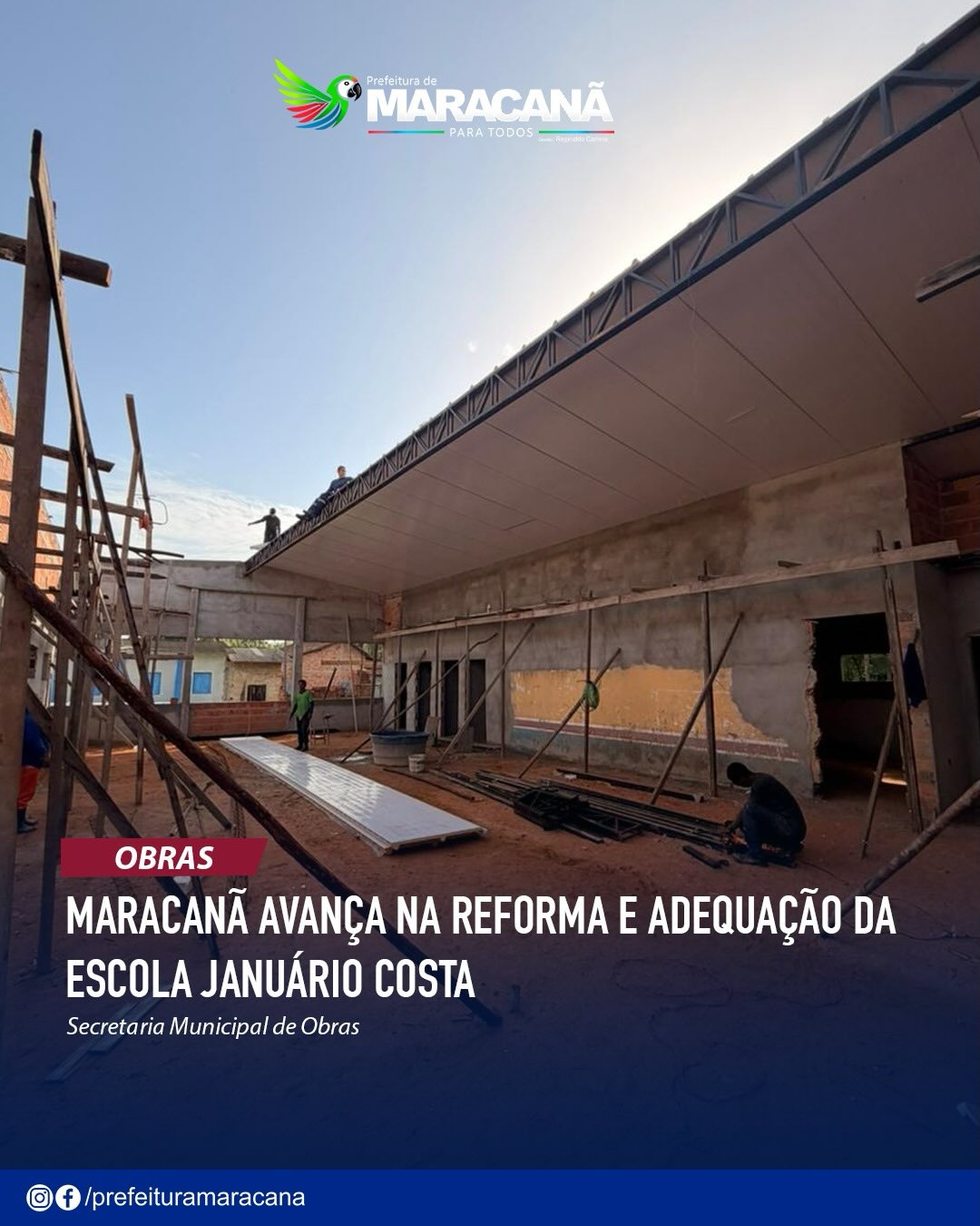 A Prefeitura Municipal de Maracanã segue investindo na melhoria da infraestrutura educacional do município. Está em andamento a reforma e adequação da Escola Municipal de Educação Infantil e Fundamental Januário Costa, localizada na Vila do KM 18, às margens da PA-127.