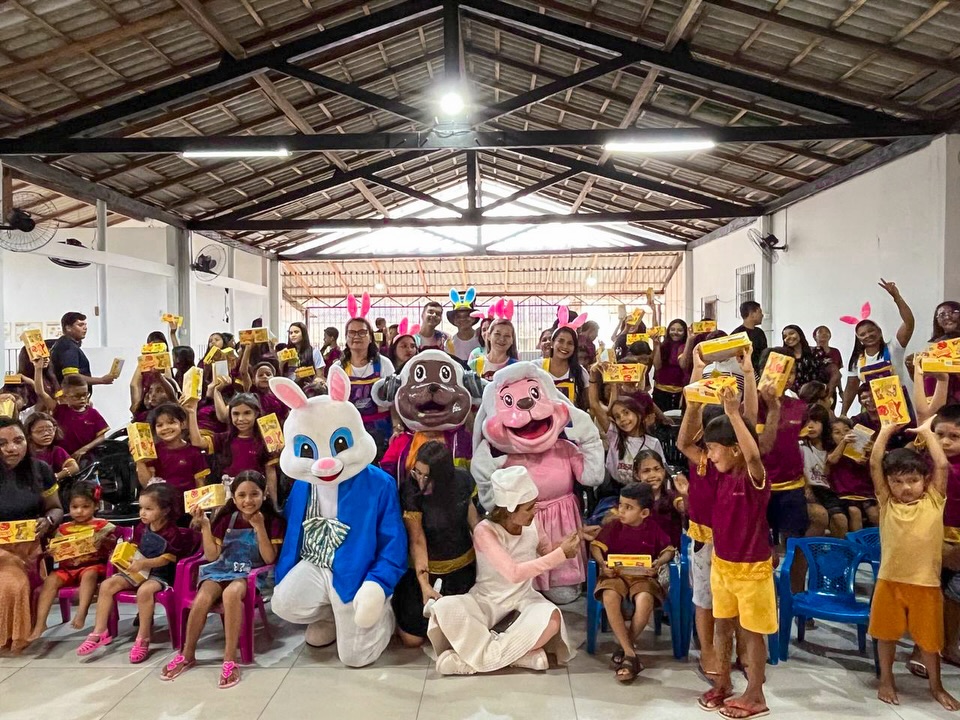 A programação reuniu 76 crianças, com início às 16h, em uma tarde marcada por aprendizado e diversão. O primeiro momento foi um teatro de fantoches, que apresentou de forma lúdica o verdadeiro significado da Páscoa, reforçando valores como amor, esperança e solidariedade.